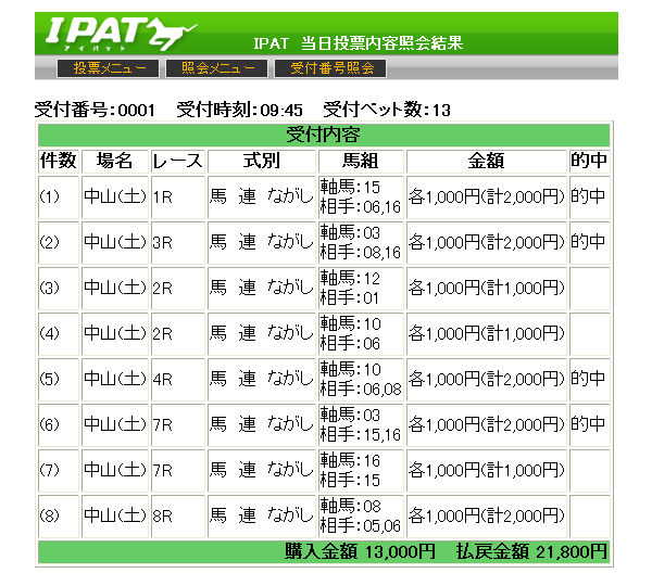 基本的には本命馬券が中心となります事をご理解くださいませ